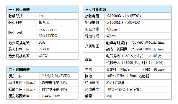 触点容量:30A 14VDC,15A 30VDC