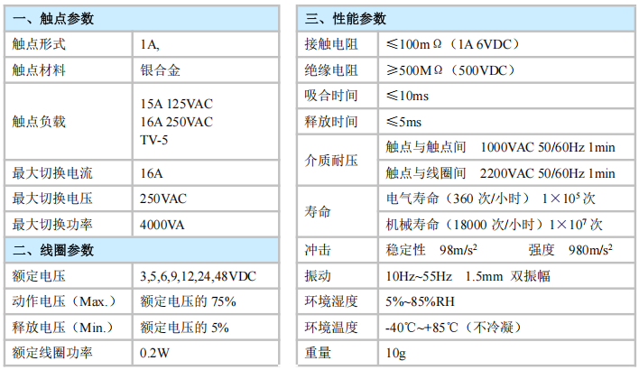 触点容量:15A 125VAC,10A 250VAC,16A 250VAC